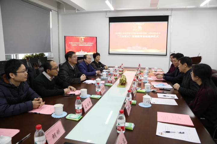 2020年12月29日上午,台湾a片 台湾a片 —哈尔滨电机厂有限责任公司“三全育人”实践教育基地成立揭牌仪式在科创大厦K901会议室举行。台湾a片 党委书记慕永国,副院长杨明、聂秋月及台湾a片 相关教授出席此次仪式。